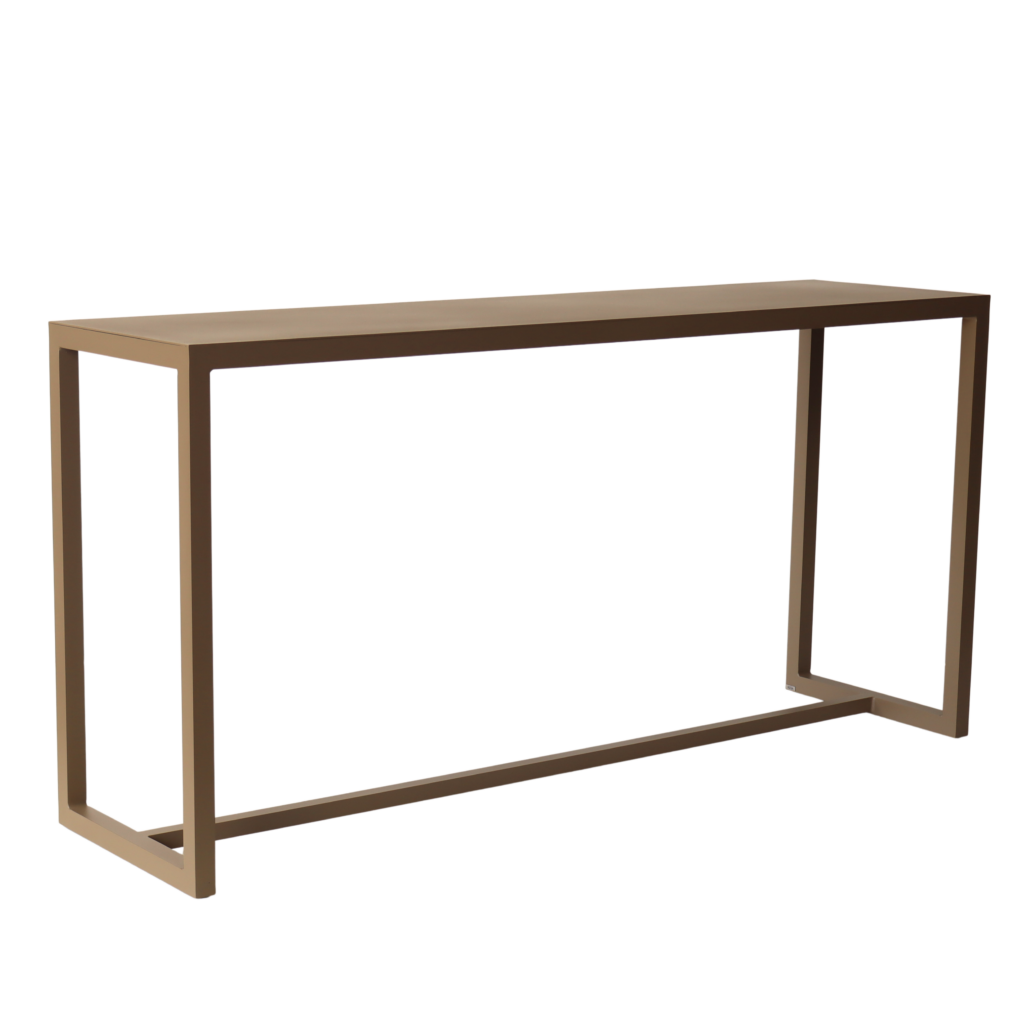 Aparador com prateleira superior em chapa de alumínio com pintura eletrostática. Possui trava nos pés.