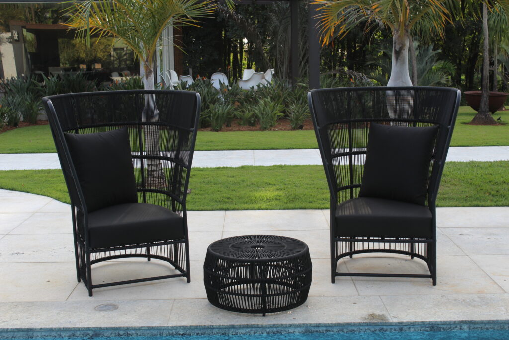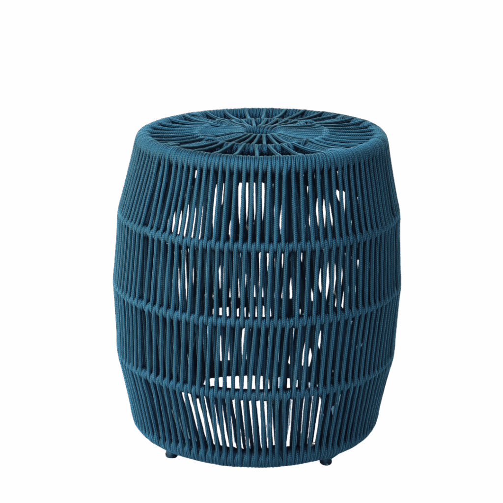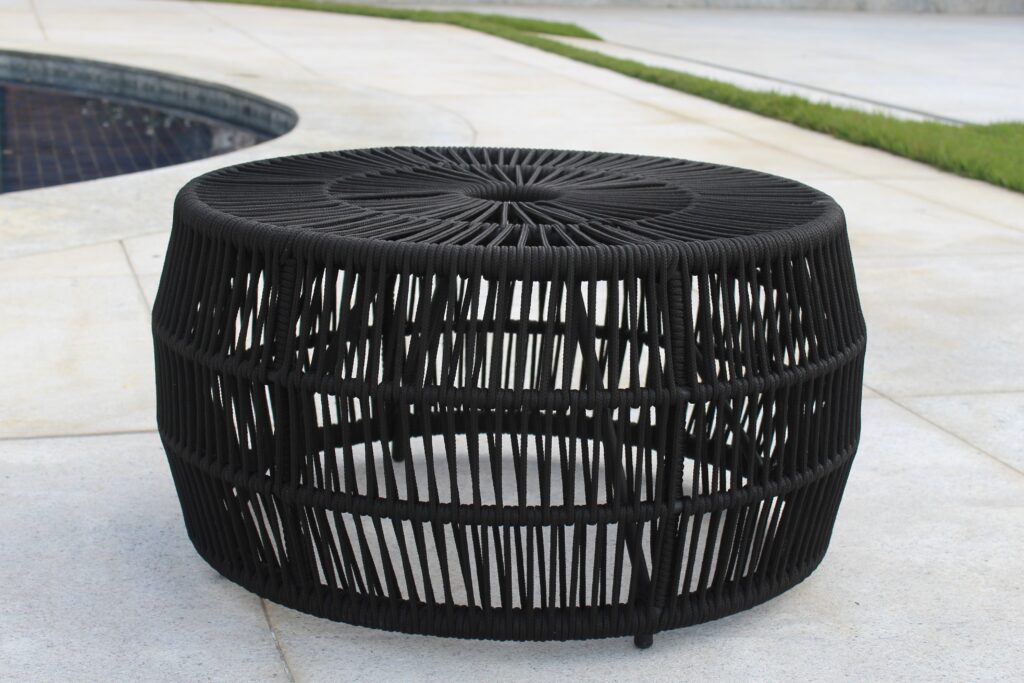Puff em alumínio com pintura eletrostática e tecimento em corda náutica.