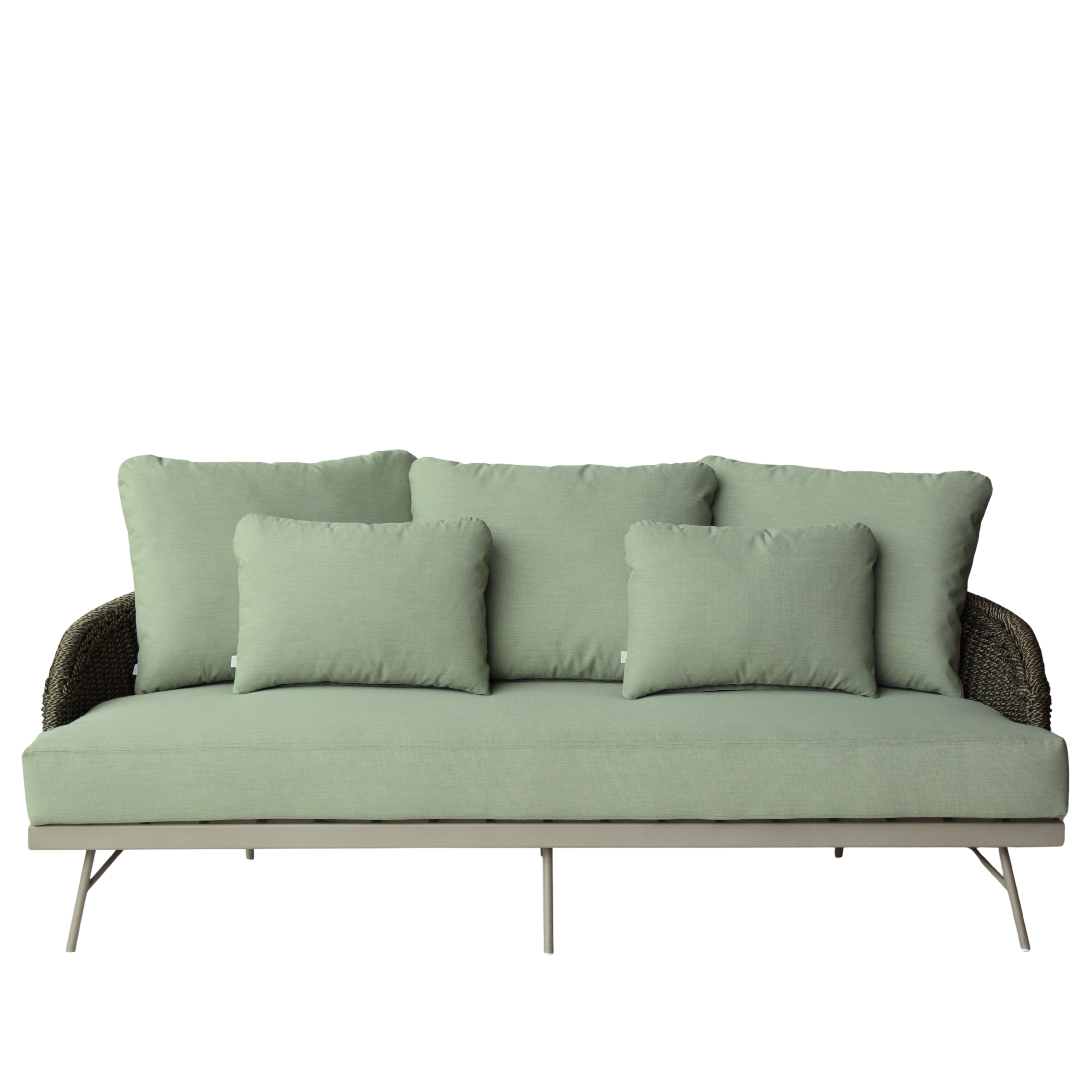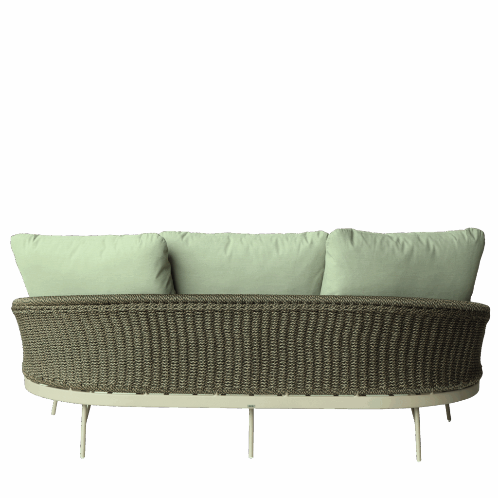 A linha Moom é composta de sofá e poltrona com base em alumínio e tecimento em corda náutica.